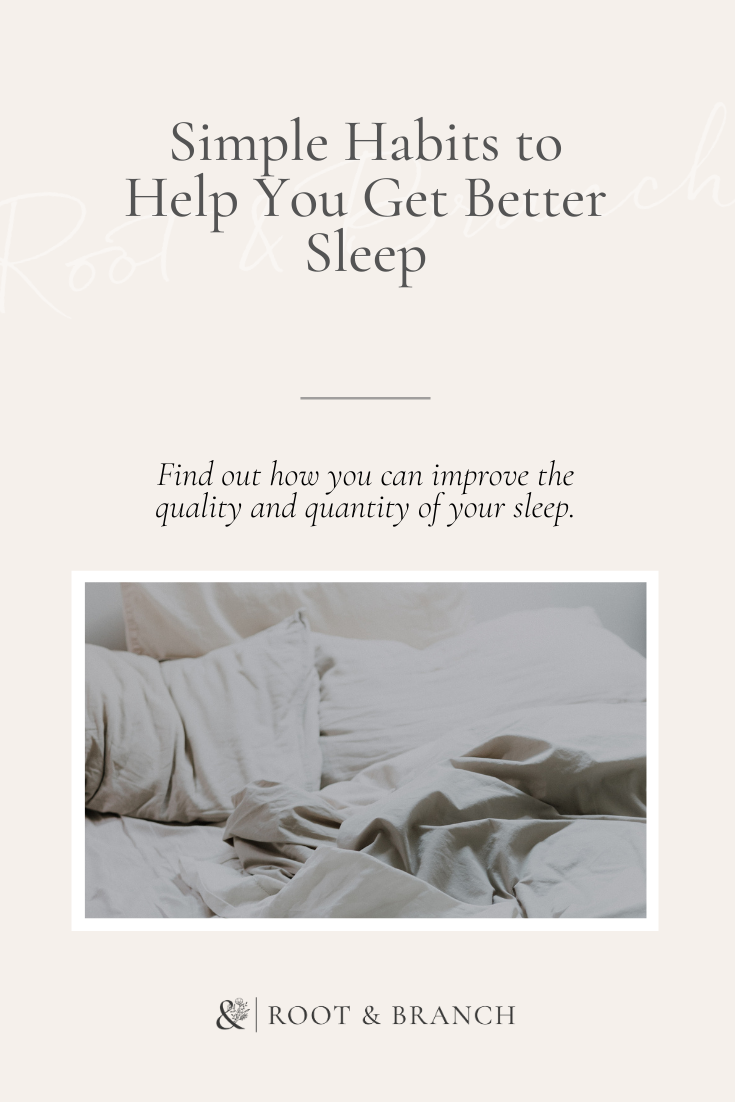 Where you sleep needs to support good sleep! The room should ideally be pitch dark, between 60-68 degrees, and quiet. (Try a noise machine to block outside noise). You also want to really limit the activities you do in bed to just sleep (and sex). Reading a bit before bed isn’t a problem, but try not to watch movies or work or anything else in this space. Allow your body to associate bed with sleep.
